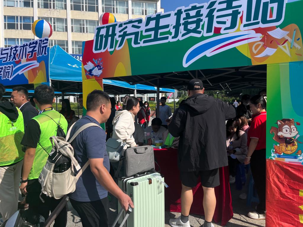 在经济管理学院迎新点前,新生辅导员刘江说:“学院制作了由全体新生姓名组成的姓名墙‘欢迎新同学’,青春、喜庆,让新生和家长直观的感受到欢迎和期许,留下专属于经管学子的迎新记忆。希望全体新生与2027年的自己来个青春的约定,在未来大学四年的时光里找到更好的自己。”