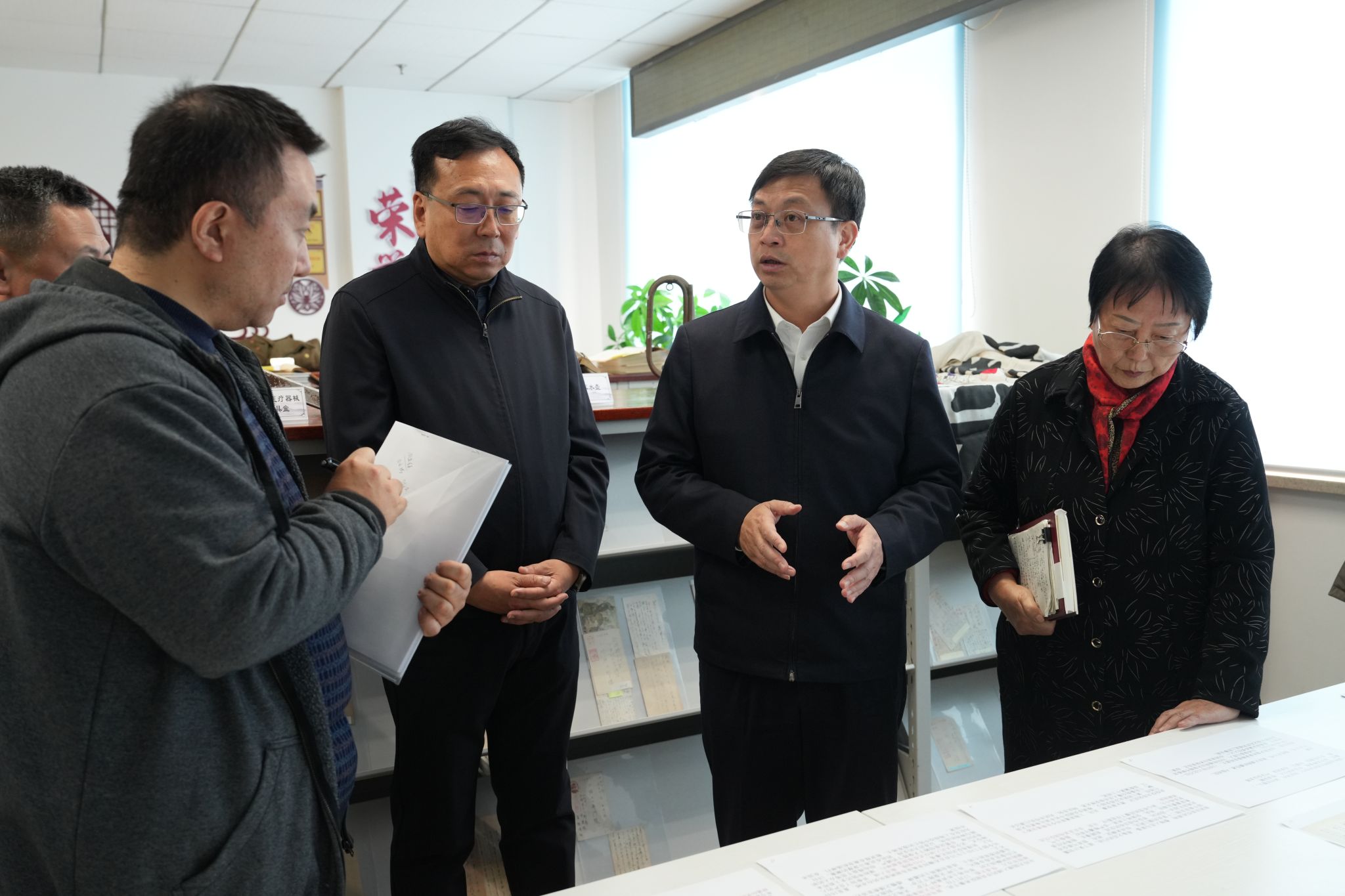 在教学综合楼,曹路宝首先听取了学校整体情况的汇报。在高句丽渤海文献中心,曹路宝详细询问史料来源和学校现阶段的研究情况,对学校高度重视中国史学科建设和高句丽渤海研究等工作给予充分肯定。针对吴大澂研究,曹路宝指出,要深入做好吴大澂奋斗历程、杰出贡献和历史功绩的研究工作,讲好吴大澂勘界守土、为寸土尽寸心的英雄壮举。在日本民间所藏侵华资料馆,曹路宝认真查阅了学校多年来收集的日本侵华相关史料,希望学校能够与南京大屠杀纪念馆加强沟通合作,进一步做好日本侵华史料的收集和研究工作。