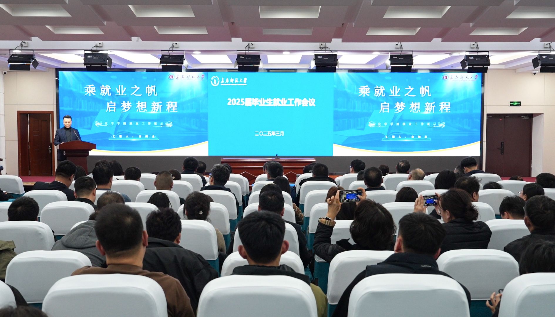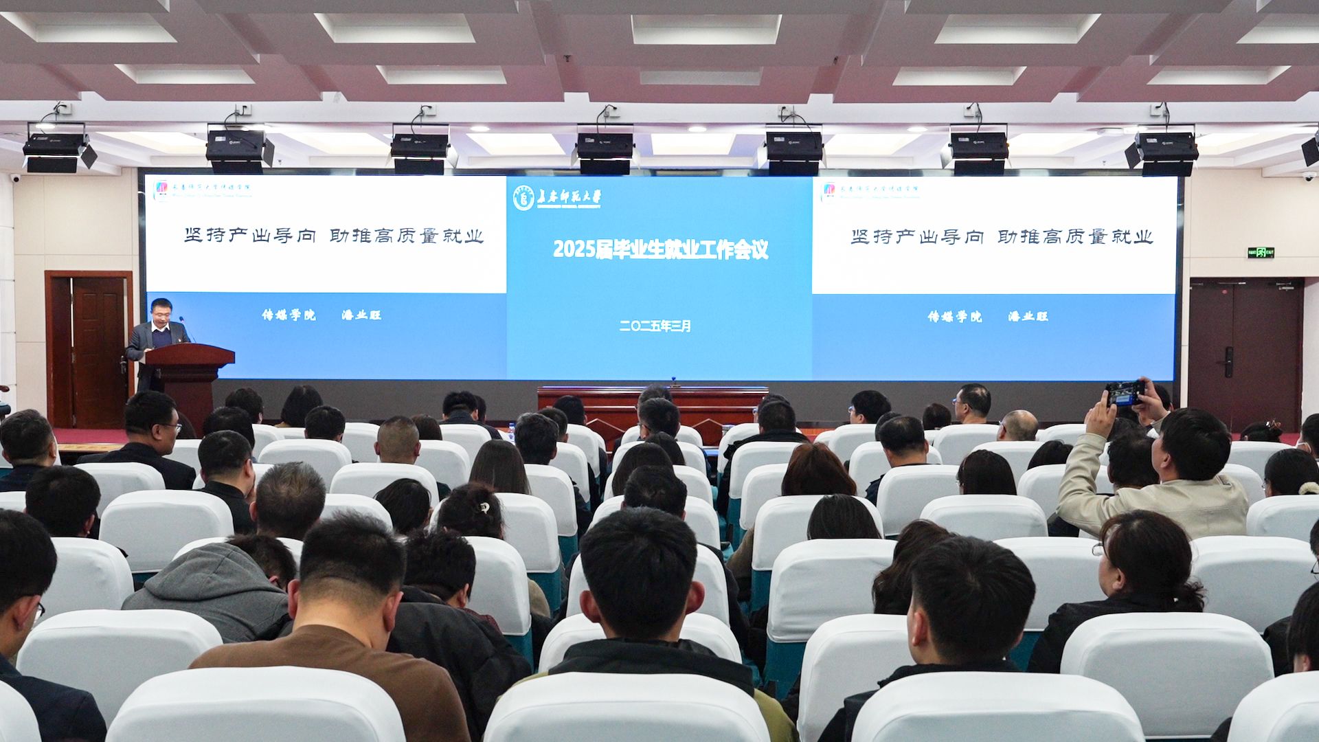 3月26日,学校在新图书馆报告厅召开2025届毕业生就业工作会议。党委书记刘多为2024年就业工作先进集体奖、就业工作进步奖获奖单位颁奖,并讲话。党委副书记、校长王延明为2024年就业工作先进个人代表颁奖。党委副书记张广翠主持会议。